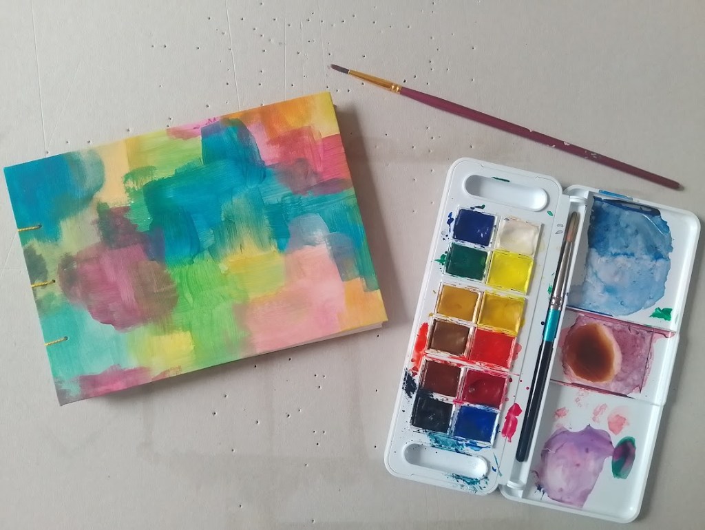 While my mind was on sketchbooks, I did what I always do when I feel stressed – I found something Very Structured to do. This time I made myself a full colour swatch of my watercolour set, and then bound it into a simple reference book