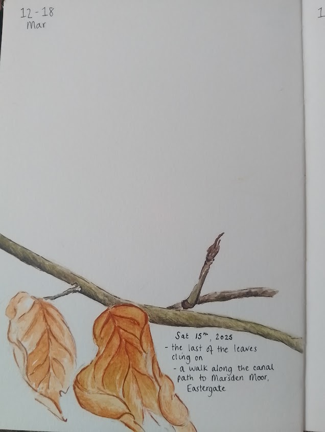 Being outside so much inspired me to finally start my perpetual journal. The idea is to allocate a page per week in your sketchbook, and as the years go on, record the things you’re seeing. The idea was started by Lara Call Gastinger, whose botanical sketching I adore.